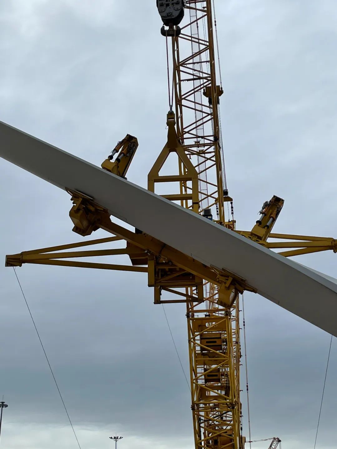 快報(bào)!君威股份/東方電氣10MW斜插式單葉片夾具順利通過用戶SAT葉片測試2022年10月22日下午3點(diǎn),福州平潭金井碼頭港區(qū)內(nèi),君威股份為東方電氣設(shè)計(jì)制造的10MW大角度斜插式單葉片夾具順利完成用戶要求的所有功能測試和SAT葉片夾持大角度旋轉(zhuǎn)試驗(yàn)。本次試驗(yàn)的10MW葉片重約38噸,長度90米,整個試驗(yàn)過程平穩(wěn)有序,嚴(yán)格謹(jǐn)慎,逐項(xiàng)完成各項(xiàng)功能測試,通